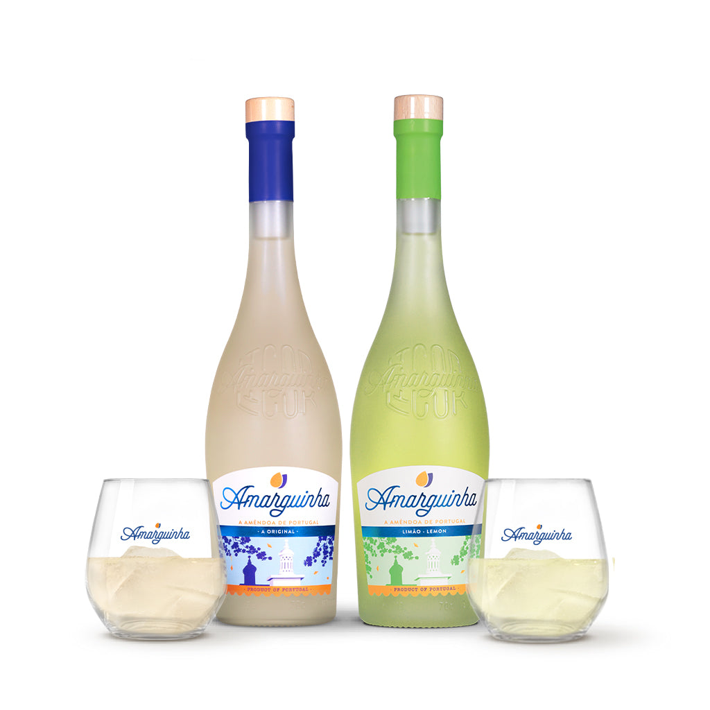 Este pack inclui 1 garrafa de Amarguinha Original 70cl + 1 garrafa de Amarguinha Limão + 2 copos exclusivos Amarguinha.